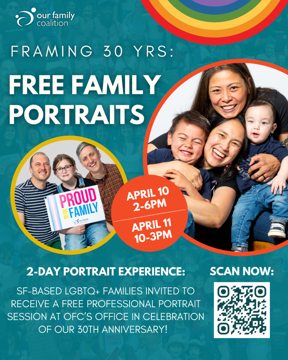 We invite San Francisco-based LGBTQ+ families to join us at the OFC office for Framing 30 Years: OFC’s Family Portraits a celebration of queer family visibility, joy, and legacy.
